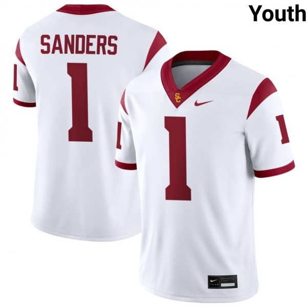 Youth Football Trojans #1 Eli Sanders Player College Jerseys - White